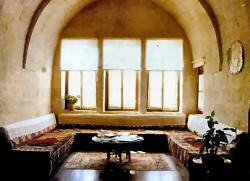 Esbelli Evi (Esbelli House) in rgp is a beautifully restored cave house. The subterranean section dates from the 5th and 6th centuries AD, while the upper section comprises five houses built in the 1890s. The owner, Sha Ersz, started buying the abandoned houses in 1987 and set about restoration to achieve a balance of antiquity and functionality. The guesthouse now comprises six bedrooms, few enough to ensure the house retains a homely feeling, with guest numbers limited to around 12.